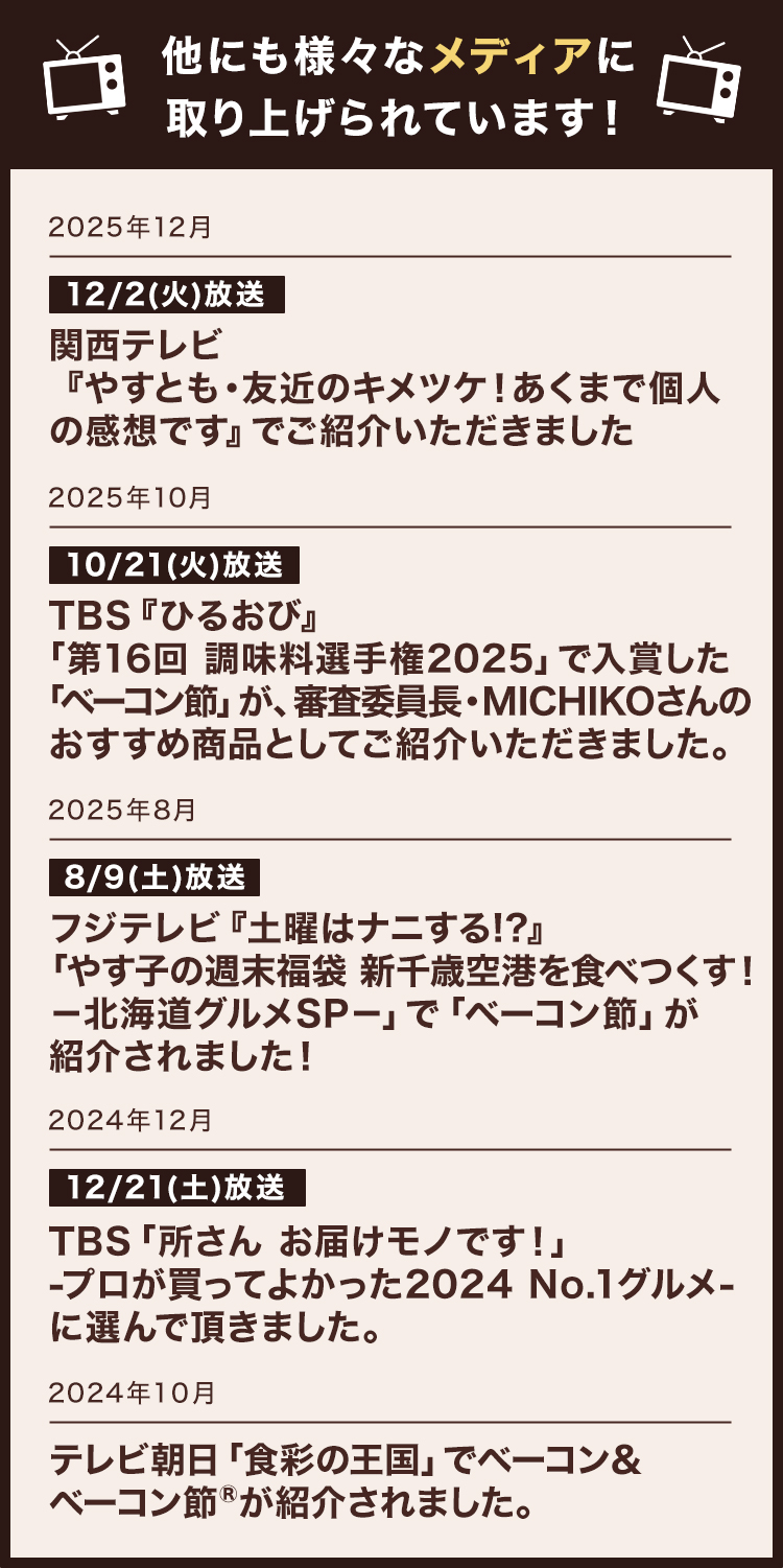 1/12放送 日本テレビ『timeleszファミリア』・ 関西テレビ『やすとも・友近のキメツケ!』・フジテレビ『土曜はナニする!?』・TBS『ひるおび』など多数メディアでご紹介いただいています!