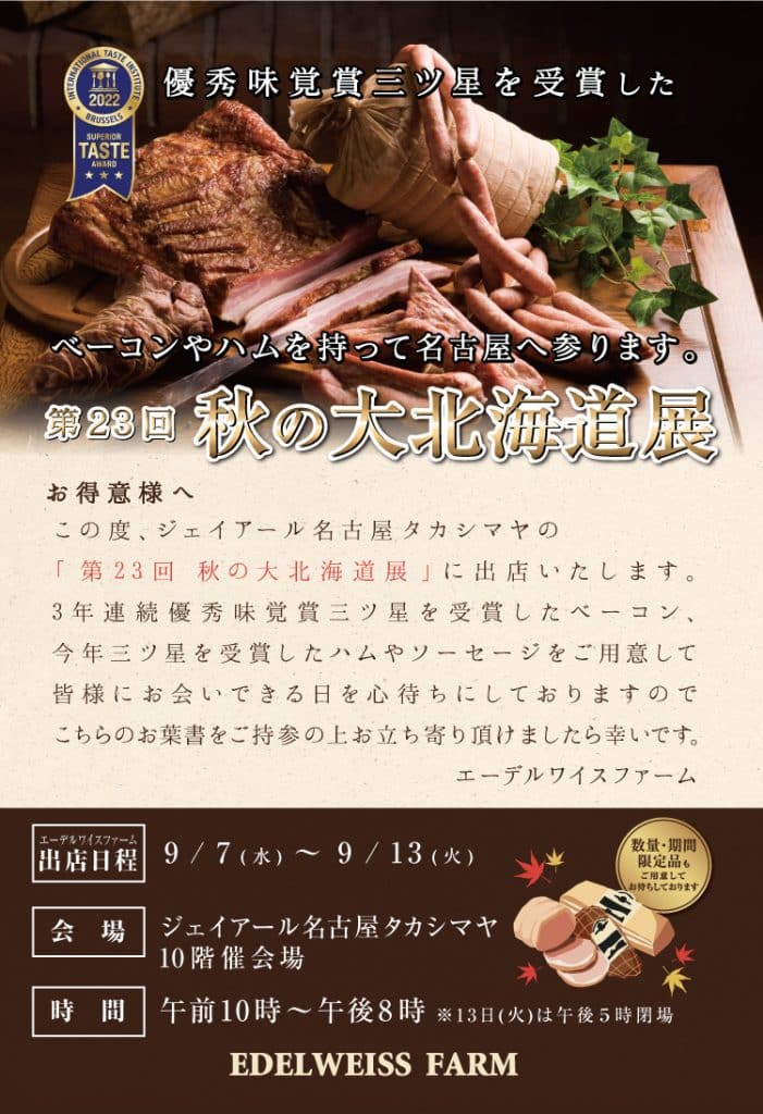 ジェイアール名古屋タカシマヤの「第23回 秋の大北海道展」に出店いたします。